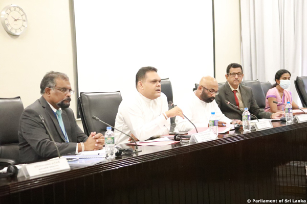 Hon. Sajith Premadasa, Leader of the Opposition, Members of the Committee Hon. Jagath Kumara Sumithraarachchi, Hon. Sahan Pradeep Withana and Parliamentarians Secretary to the Treasury/Ministry of Finance, Economic Stabilization and National Policies. Mr. K M Mahinda Siriwardana, officials representing the Ministry and institutions affiliated to it were present at the Committee meeting held.