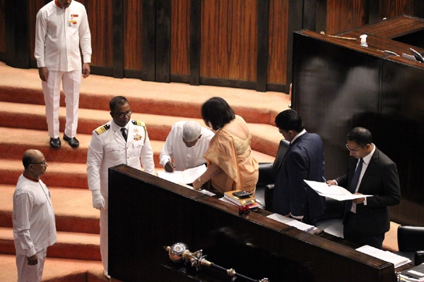 After taking the official oath/affirmation before the Speaker, he then signed the Member roll kept before the Secretary General of the Parliament Mrs. Kushani Rohanadeera.