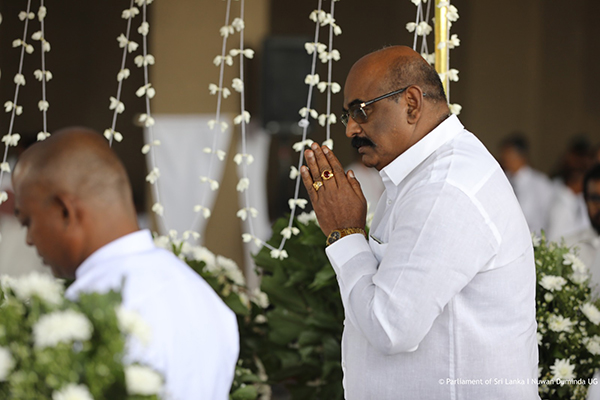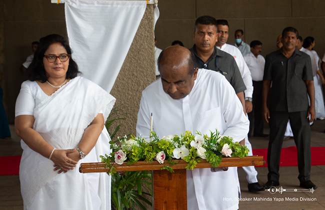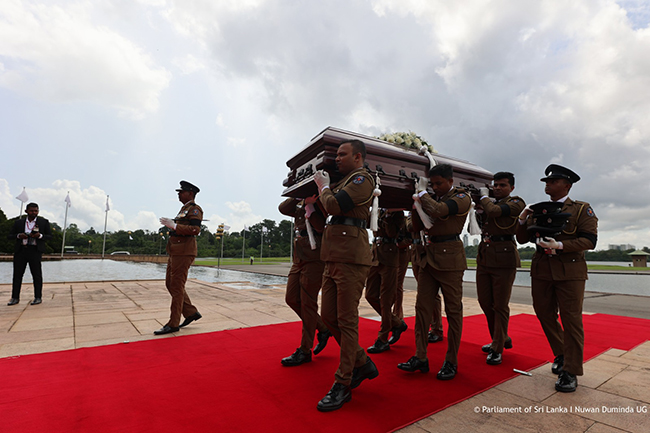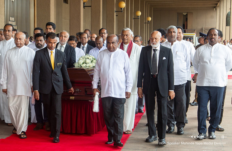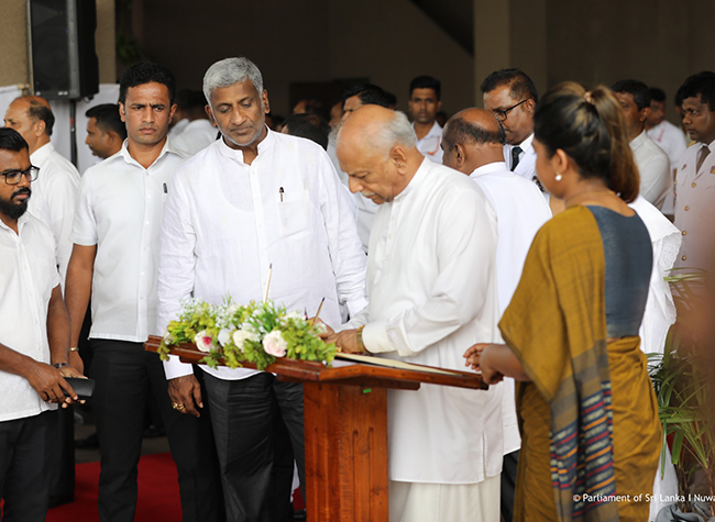 Hon. Mahinda Yapa Abeywardana, Speaker of Parliament and Hon. Dinesh Gunawardena, the Prime Minister signed a note of condolence following paying their last respects. Party Leaders, former Presidents, Members of Parliament, Ambassadors, Secretaries and other dignitaries also joined to pay last respects and to sign a note of condolence.
