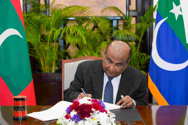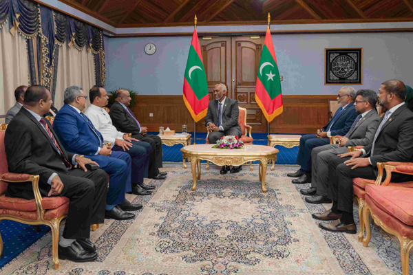 During the visit, Hon. Mahinda Yapa Abeywardana paid a courtesy call on His Excellency Dr. Mohamed Muizzu, President of the Republic of Maldives, at the President's Office on the 13th of August 2024. The President warmly welcomed the Speaker and his delegation, noting the deep-rooted friendly relations between the Maldives and Sri Lanka. The discussions centered on the President's hopes for a peaceful Presidential election in Sri Lanka, with positive outcomes that would further contribute to the nation's development and prosperity.