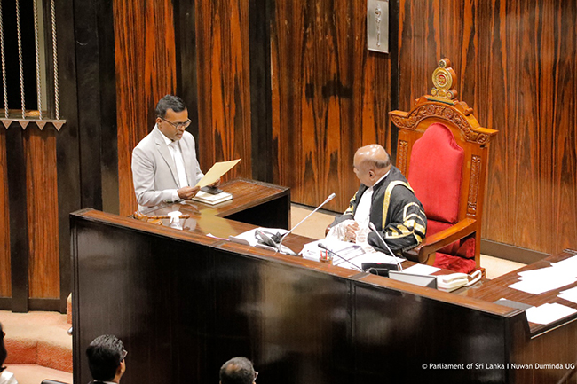 Following taking oaths/affirmation before the Speaker, he then signed the Member roll placed in front of the Secretary General of the Parliament Mrs. Kushani Rohanadeera.