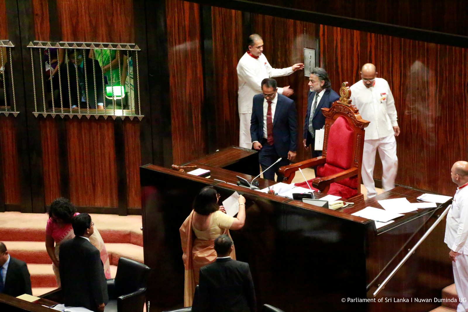 புதிய சபாநாயகரை முன்மொழிந்து, வழிமொழிந்த பிரதமர் மற்றும் சபை முதல்வரினால் சம்பிரதாயபூர்வமாக புதிய சபாநாயகர் தனது ஆசனத்துக்கு அழைத்துச்செல்லப்பட்டார்.
