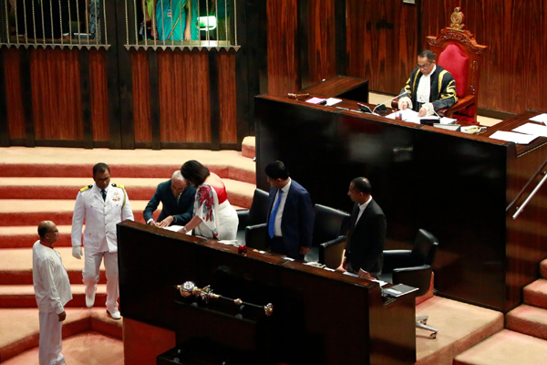 කථානායකවරයා ඉදිරියේ දිවුරුම්දීමෙන් පසු ඒ මහතා පාර්ලිමේන්තුවේ මහ ලේකම් කුෂානි රෝහණදීර මහත්මිය ඉදිරියේදී මන්ත්රී නාමලේඛනයේ අත්සන් තැබීය.