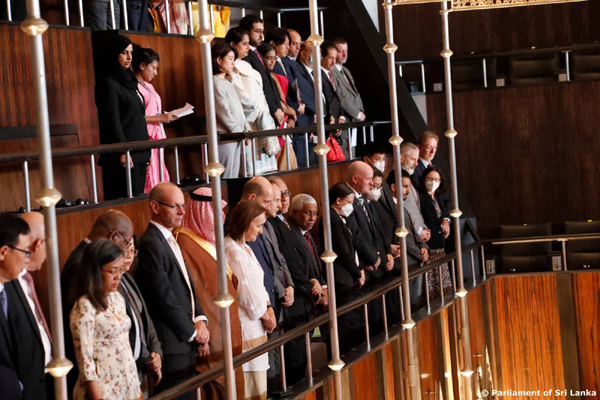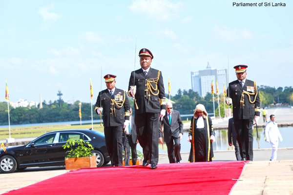 එහිදී කථානායක ගරු මහින්ද යාපා අබේවර්ධන මහතා සහ පාර්ලිමේන්තුවේ මහ ලේකම් ධම්මික දසනායක මහතා, පාර්ලිමේන්තු ගොඩනැගිල්ලේ ප්රධාන පියගැට පෙළ අසලදී ගරු ජනාධිපති රනිල් වික්රමසිංහ මැතිතුමා පිළිගනු ලැබූහ.