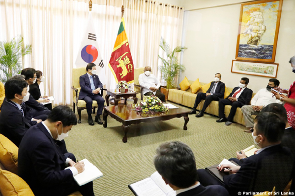 ගරු කථානායක මහින්ද යාපා අබේවර්ධන මහතාගේ ආරාධනයකට අනුව මෙරටට පැමිණි දකුණු කොරියානු කථානායකවරයා ඇතුළු නියෝජිත පිරිස පිළිගනු ලැබුවේ නියෝජ්ය කාරක සභා සභාපති අංගජන් රාමනාදන්, පාර්ලිමේන්තුවේ මහලේකම් ධම්මික දසනායක සහ වේත්රධාරි නරේන්ද්ර ප්රනාන්දු යන මහත්වරුන් විසිනි.