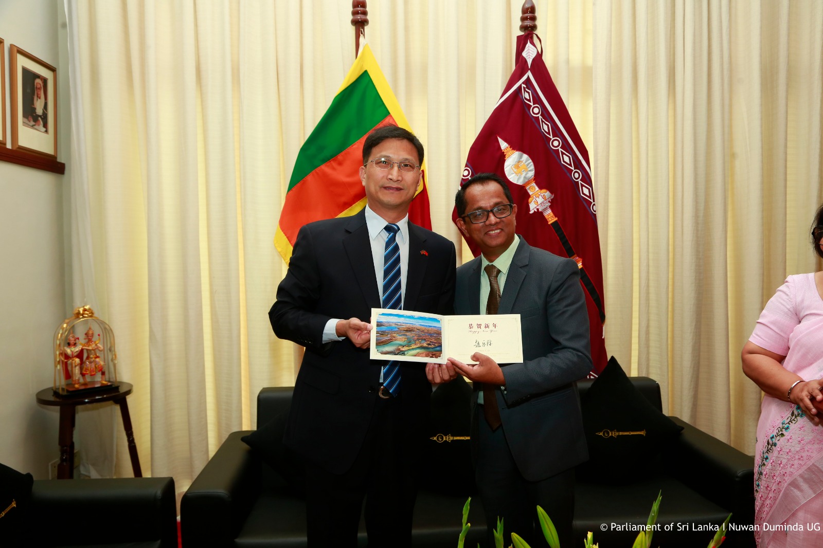 මෙම හමුවේදී තානාපතිවරයා විසින් මහජන චීන සමූහාණ්ඩුවේ ජාතික මහජන කොංග්රසයේ ස්ථාවර කමිටුවේ සභාපති ගරු ෂාඕ ලෙජි (Zhao Leji) මහතාගේ (මහජන චීන සමූහාණ්ඩුවේ පාර්ලිමේන්තුවේ කථානායක), නව වසර සඳහා වන සුබ පැතුම් පණිවුඩය කථානායකවරයා වෙත ලබා දෙන ලදී. නව වසරට සුබ පැතුම් එක් කරමින් තානාපතිවරයා දෙරට අතර දිගුකාලීන සහයෝගීතාව පවත්වා ගැනීමේ වැදගත්කම මෙහිදී අවධාරණය කළේය. විශේෂයෙන්ම හුවමාරු වැඩසටහන් හරහා ඉදිරියේදී දෙරටේ ව්යවස්ථාදායක අතර සබඳතා ශක්තිමත් කිරීම පිළිබඳව මෙහිදී අවධානය යොමු විය.