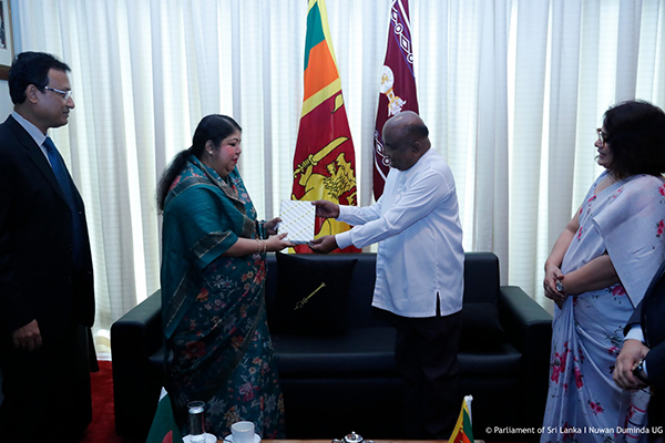 உத்தியோகபூர்வ விஜயம் மேற்கொண்டு இலங்கைக்கு வருகை தந்துள்ள பங்களாதேஷ் சபாநாயகர் கௌரவ (கலாநிதி) ஷிரின் ஷர்மின் சவுத்ரி (Shirin Sharmin Chaudhury) மற்றும் சபாநாயகர் கௌரவ மஹிந்த யாப்பா அபேவர்தனவுக்கும் இடையில் சந்திப்பொன்று அண்மையில் (செப். 18) பாராளுமன்றத்தில் இடம்பெற்றது. இதன்போது பாராளுமன்ற செயலாளர் நாயகம் குஷானி ரோஹணதீர மற்றும் இலங்கைக்கான பங்களாதேஷ் உயர்ஸ்தானிகர் தாரிக் மொஹமட் அரிஃபுல் இஸ்லாம் ஆகியோரும் கலந்துகொண்டனர்.
