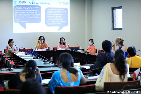 The Select Committee of Parliament to look into and report to Parliament its recommendations to ensure gender equity and equality with special emphasis on looking into gender-based discriminations and violations of women’s rights in Sri Lanka organized a Sensitization and Information Sharing Session on Disability Rights and Inclusion for Members of Parliament.