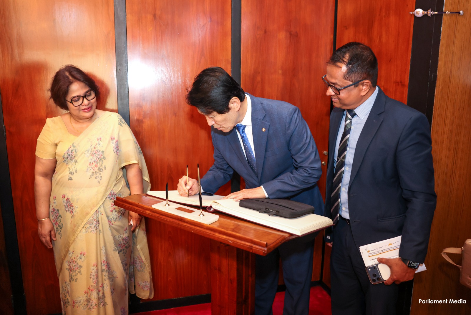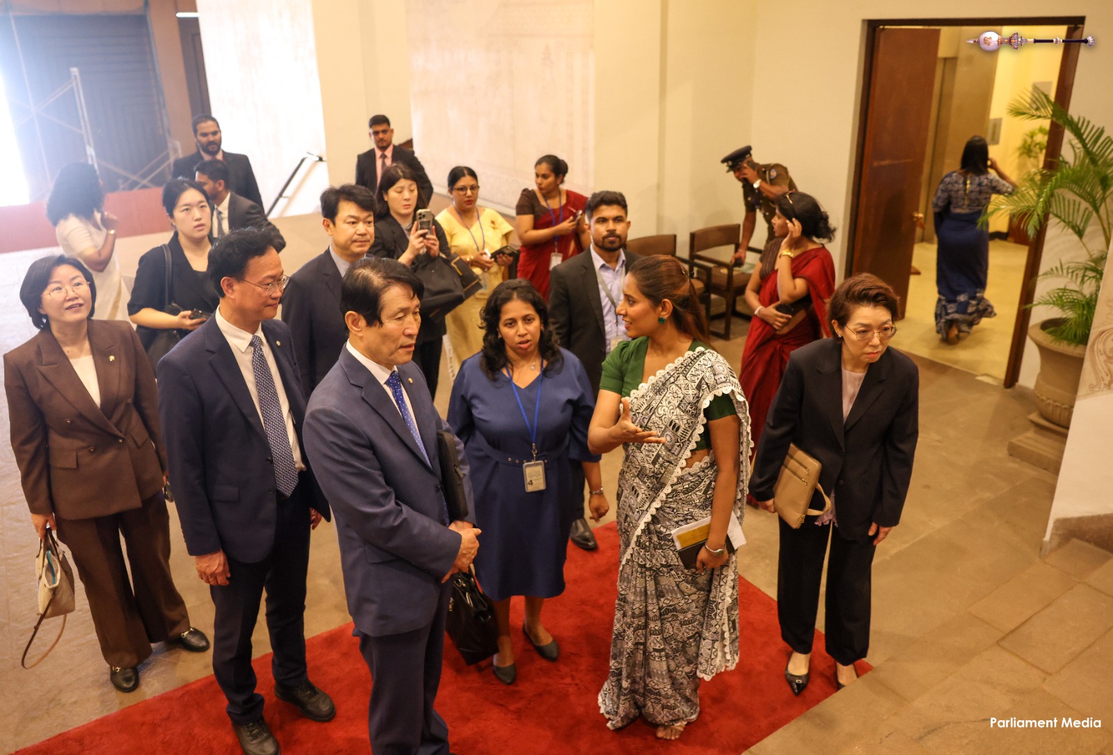 Following the meeting, the visiting delegation undertook a parliamentary tour, which included offering flowers at the Jaya Sri Maha Bodhi tree located within the Parliamentary Complex, and observed the parliamentary proceedings from the VIP Gallery.