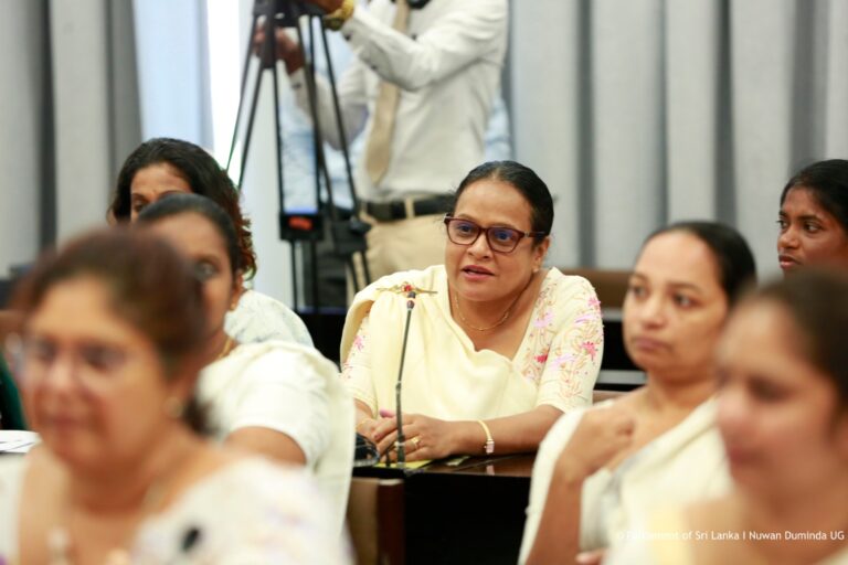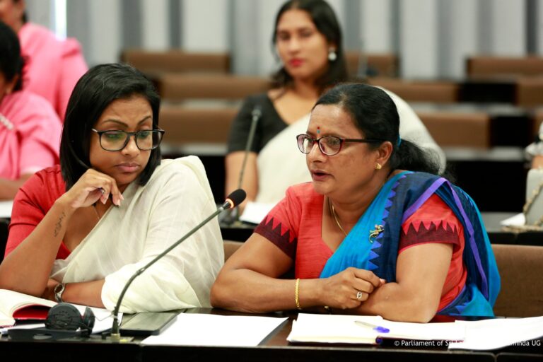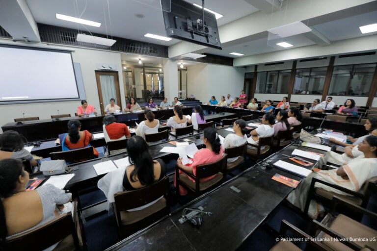 The session was attended by several Parliamentarians, including Hon. Saroja Savithri Paulraj, Hon. Rohini Kumari Wijerathna, Hon. Samanmalee Gunasingha, Hon. Chamindrani Bandara Kirielle, Hon. Deepthi Wasalage, Hon. Thushari Jayasingha, Hon. Oshani Umanga, Hon. Dr. Kaushalya Ariyarathna, Hon. Krishnan Kaleichelvi, Hon. Lakmali Hemachandra, Hon. Geetha Herath, Hon. Hiruni Wijesinghe, Hon. Anushka Thilakarathne, Hon. Sagarika Athauda, Hon. M.A.C.S. Chathuri Gangani, Hon. Nilusha Lakmali, Hon. A.M.M.M. Rathwaththe, Hon. Nilanthi Kottahachchi, Hon. Hasara Liyanage, and Hon. Ambika Samivel, among others.