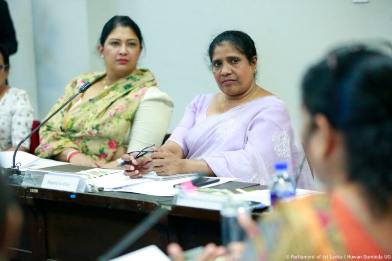 Deputy Co-Chairpersons of the Caucus Hon. Member of Parliament (Mrs.) Chamindrani Kiriella (Attorney-at-Law) and Hon. Member of Parliament (Mrs.) Samanmali Gunasinghe and Members of Parliament, (Mrs.) Rohini Kumari Wijerathna, (Mrs.) Geetha Herath, Attorney at Law, (Mrs.) Sagarika Athauda (Attorney-at-Law), (Ms.) (Dr) Kaushalya Ariyarathne, (Mrs.) Oshani Umanga, (Ms.) Krishnan Kalaichelvi, (Mrs.) Nilanthi Kottahachchi (Attorney-at-Law), (Mrs.) M.A.C.S. Chathuri Gangani, Nilusha Lakmali Gamage, (Mrs.) A.M.M.M. Rathwaththe, (Mrs.) Deepthi Wasalage, (Mrs.) Hiruni Wijesinghe (Attorney-at-Law), (Ms.) Ambika Samivel and (Ms.) Lakmali Hemachandra (Attorney-at-Law) were also present at this meeting.