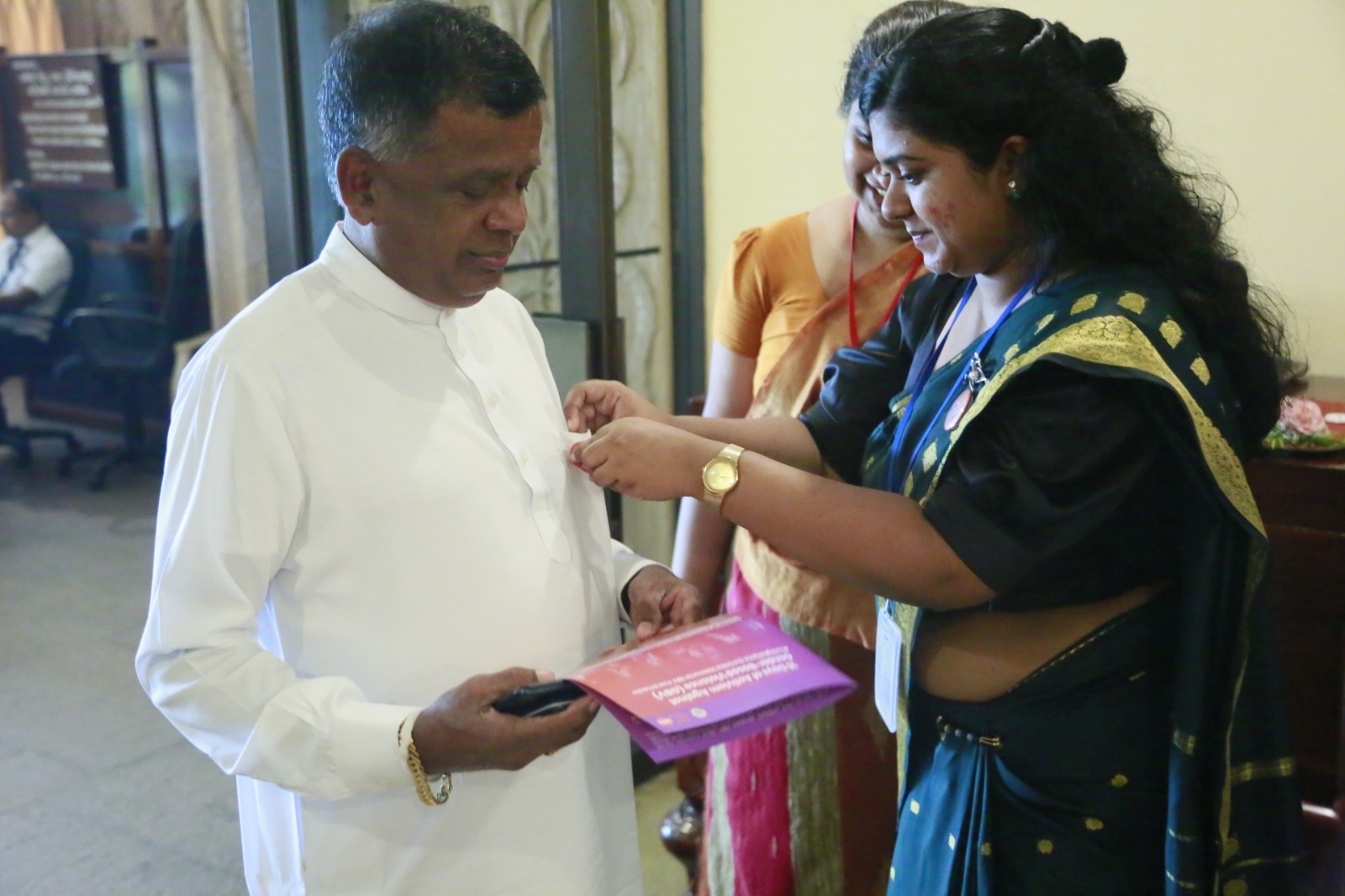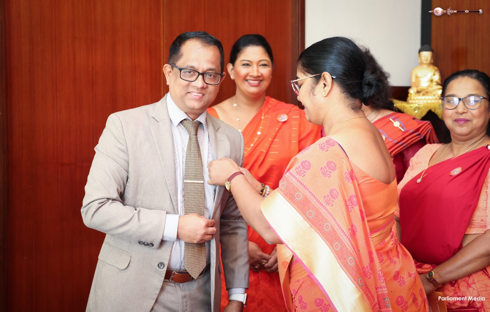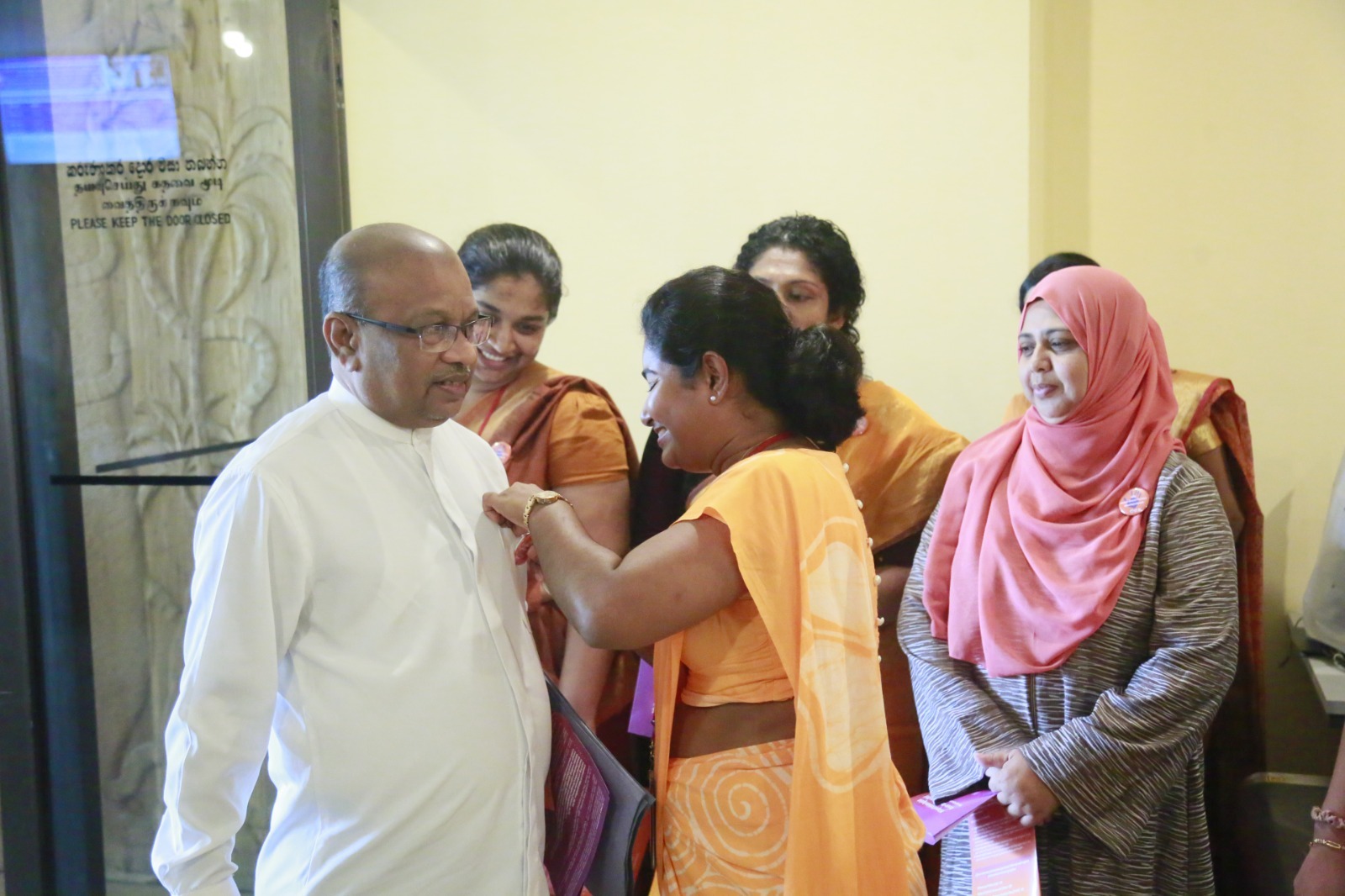 During this programme organized by the Women Parliamentarians’ Caucus with the support of the United Nations Population Fund (UNFPA), badges were also presented to the Hon. Deputy Speaker Dr. Rizvie Salih, Hon. Deputy Chairperson of Committees Hemali Weerasekara, Hon. Leader of the House Minister Bimal Rathnayake, Hon. Chief Government Whip Minister Dr. Nalinda Jayatissa, and Hon. Chief Opposition Whip Gayantha Karunathilaka. In addition, the Secretary General of Parliament Kushani Rohanadeera, Chief of Staff and Deputy Secretary General Chaminda Kularatne, and Assistant Secretary General Hansa Abeyratne were also presented with badges.