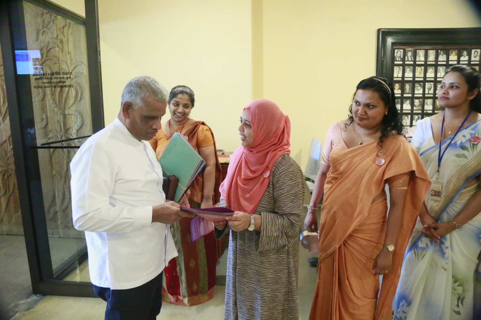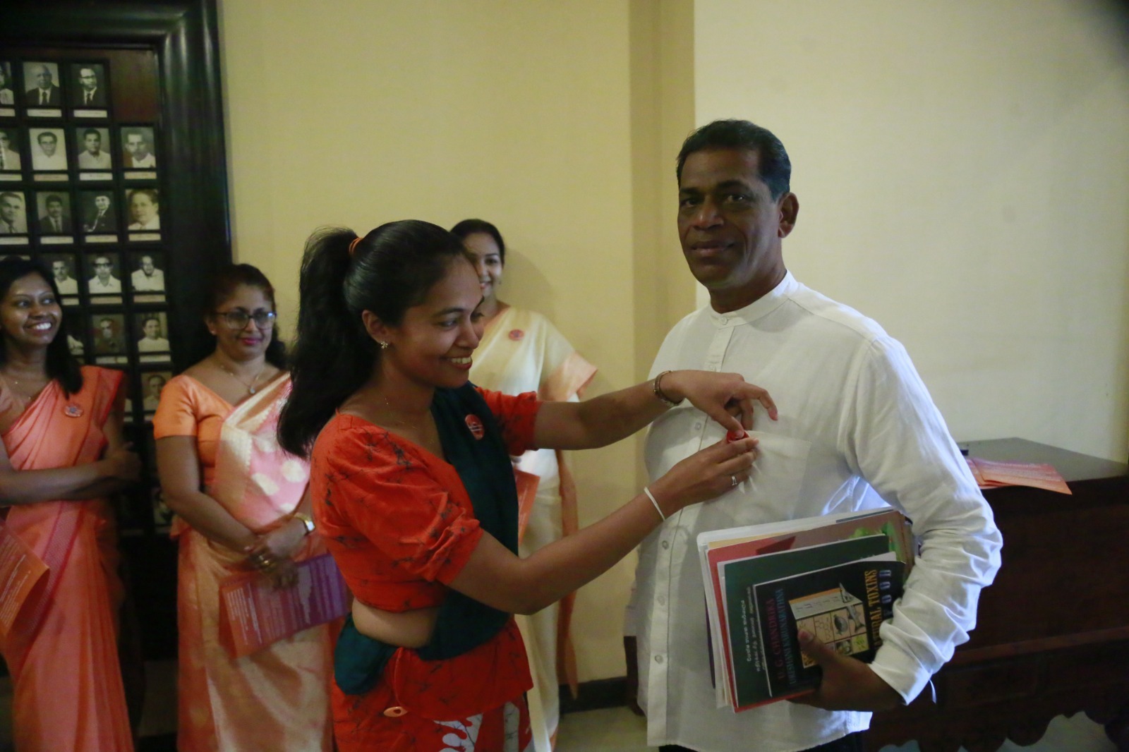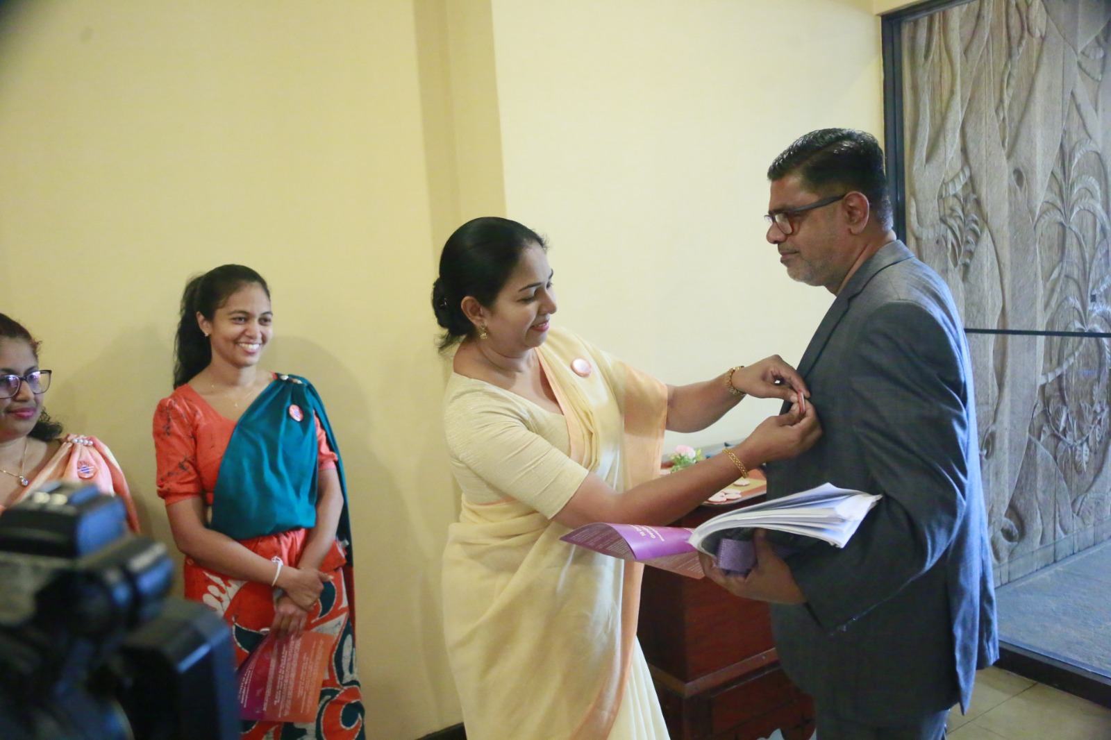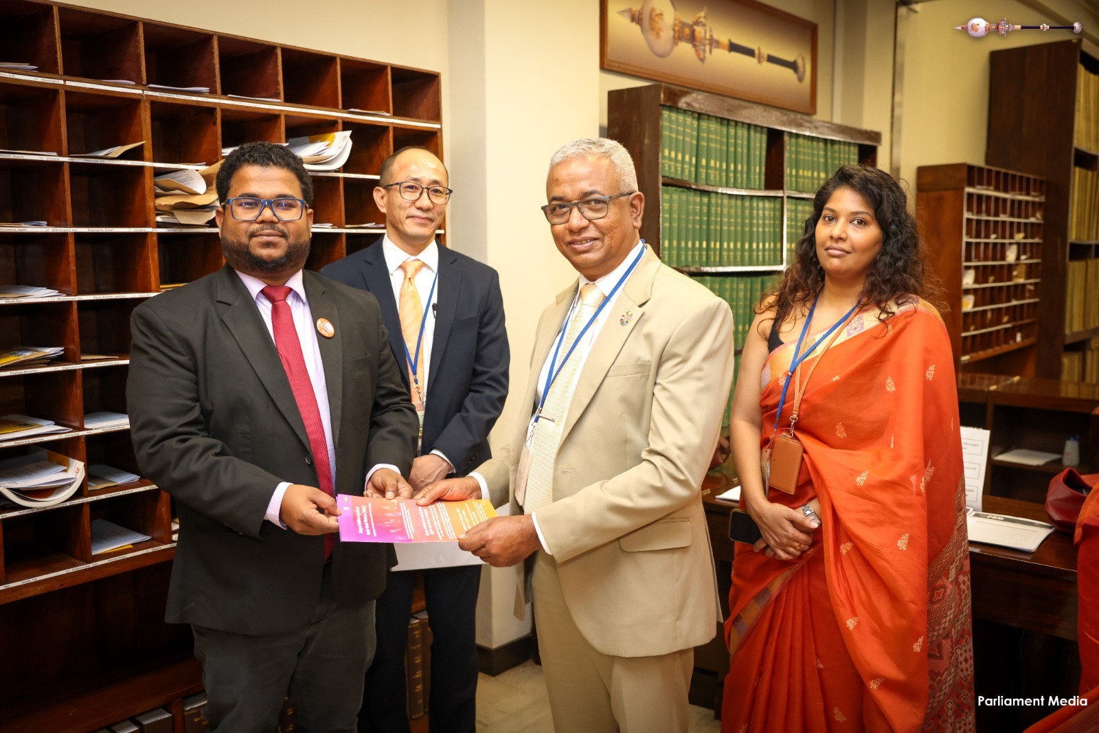 During this programme organized by the Women Parliamentarians’ Caucus with the support of the United Nations Population Fund (UNFPA), badges were also presented to the Hon. Deputy Speaker Dr. Rizvie Salih, Hon. Deputy Chairperson of Committees Hemali Weerasekara, Hon. Leader of the House Minister Bimal Rathnayake, Hon. Chief Government Whip Minister Dr. Nalinda Jayatissa, and Hon. Chief Opposition Whip Gayantha Karunathilaka. In addition, the Secretary General of Parliament Kushani Rohanadeera, Chief of Staff and Deputy Secretary General Chaminda Kularatne, and Assistant Secretary General Hansa Abeyratne were also presented with badges.