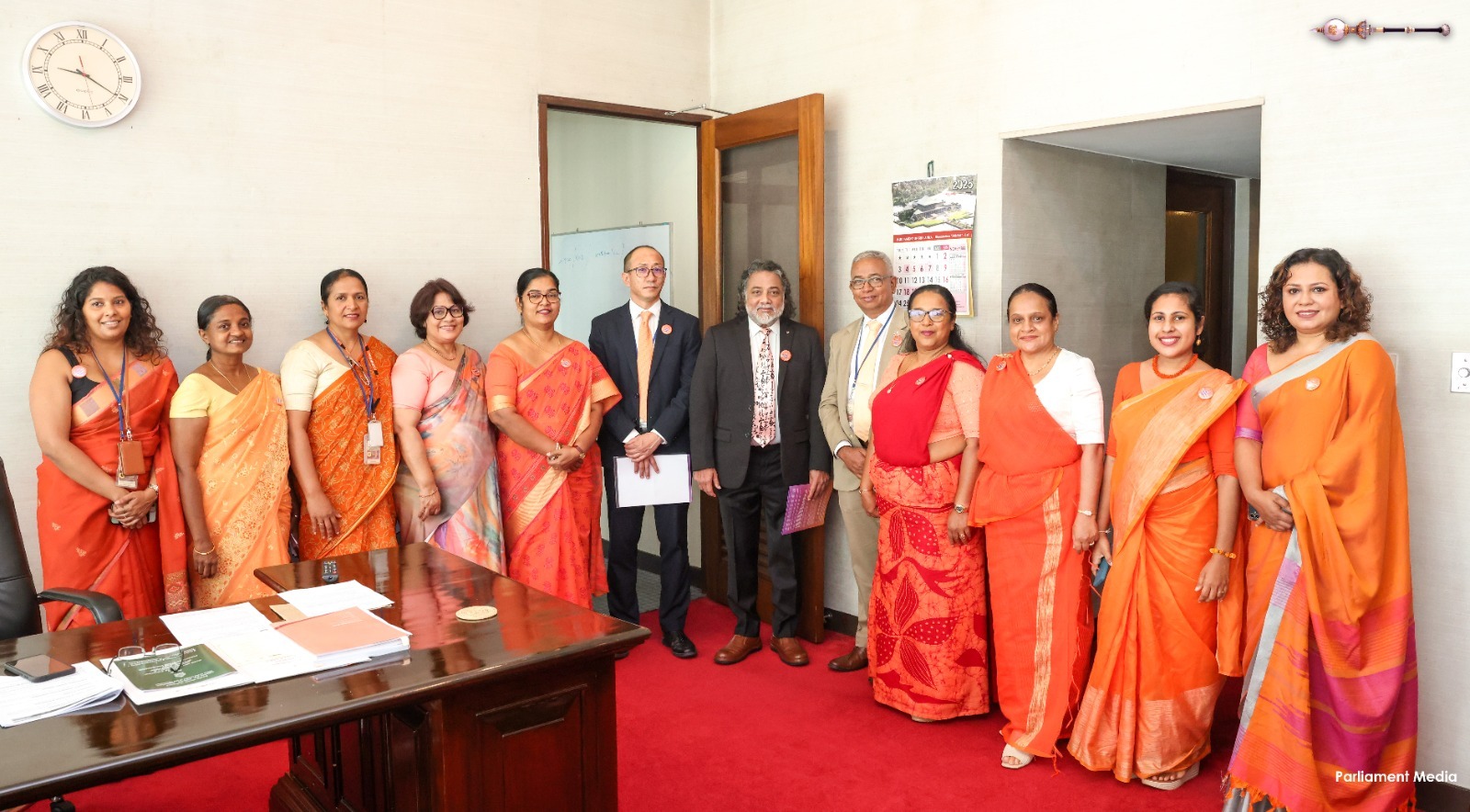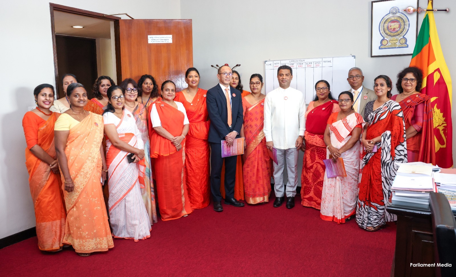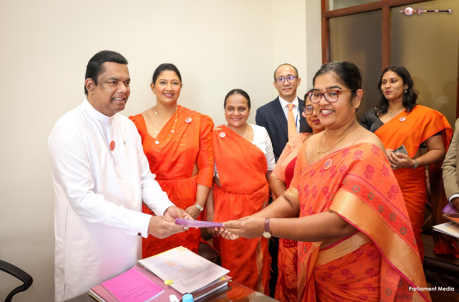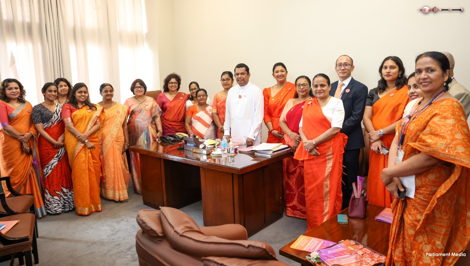 Expressing their support for today’s programme, women parliamentarians as well as male parliamentarians, and members of the Parliamentary staff, arrived dressed in orange or orange-accented attire.