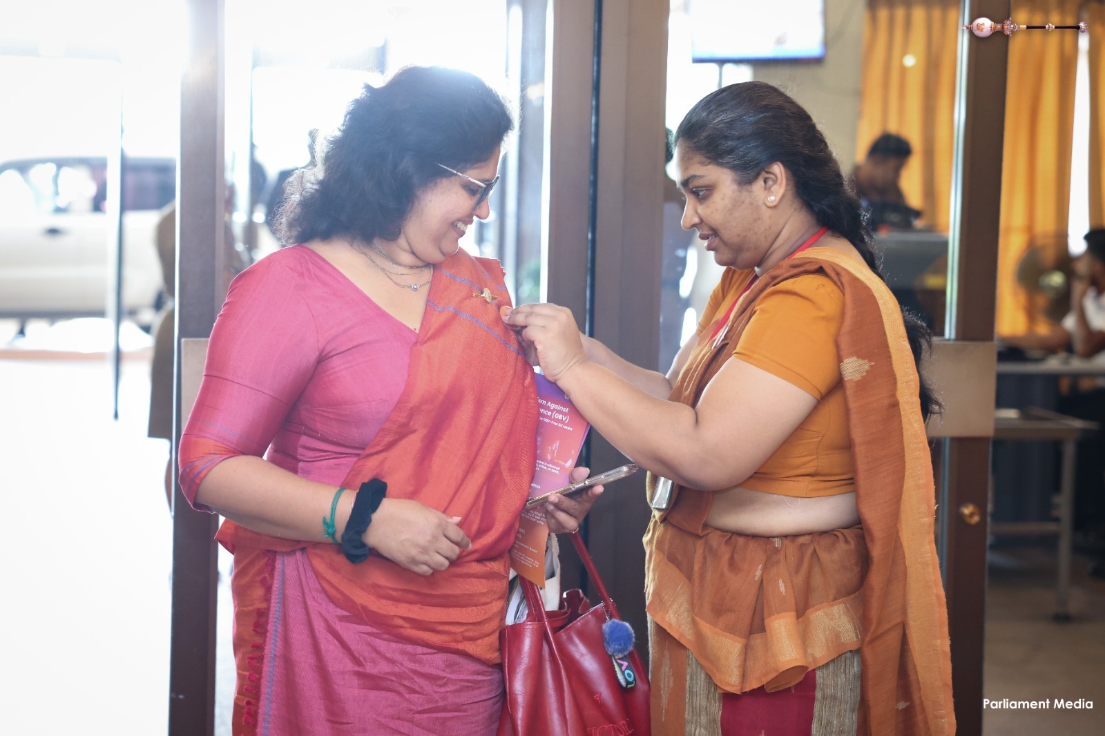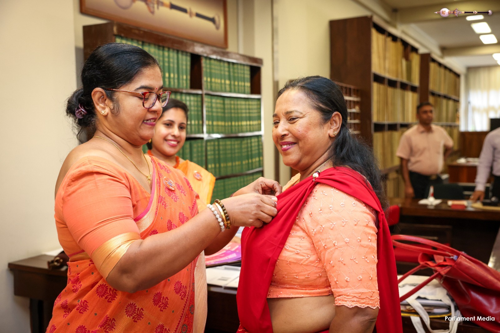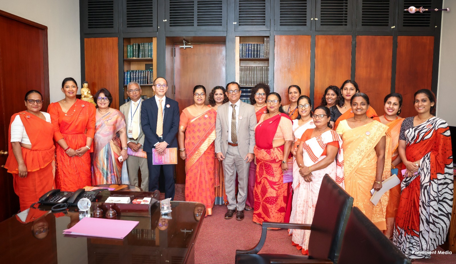Expressing their support for today’s programme, women parliamentarians as well as male parliamentarians, and members of the Parliamentary staff, arrived dressed in orange or orange-accented attire.