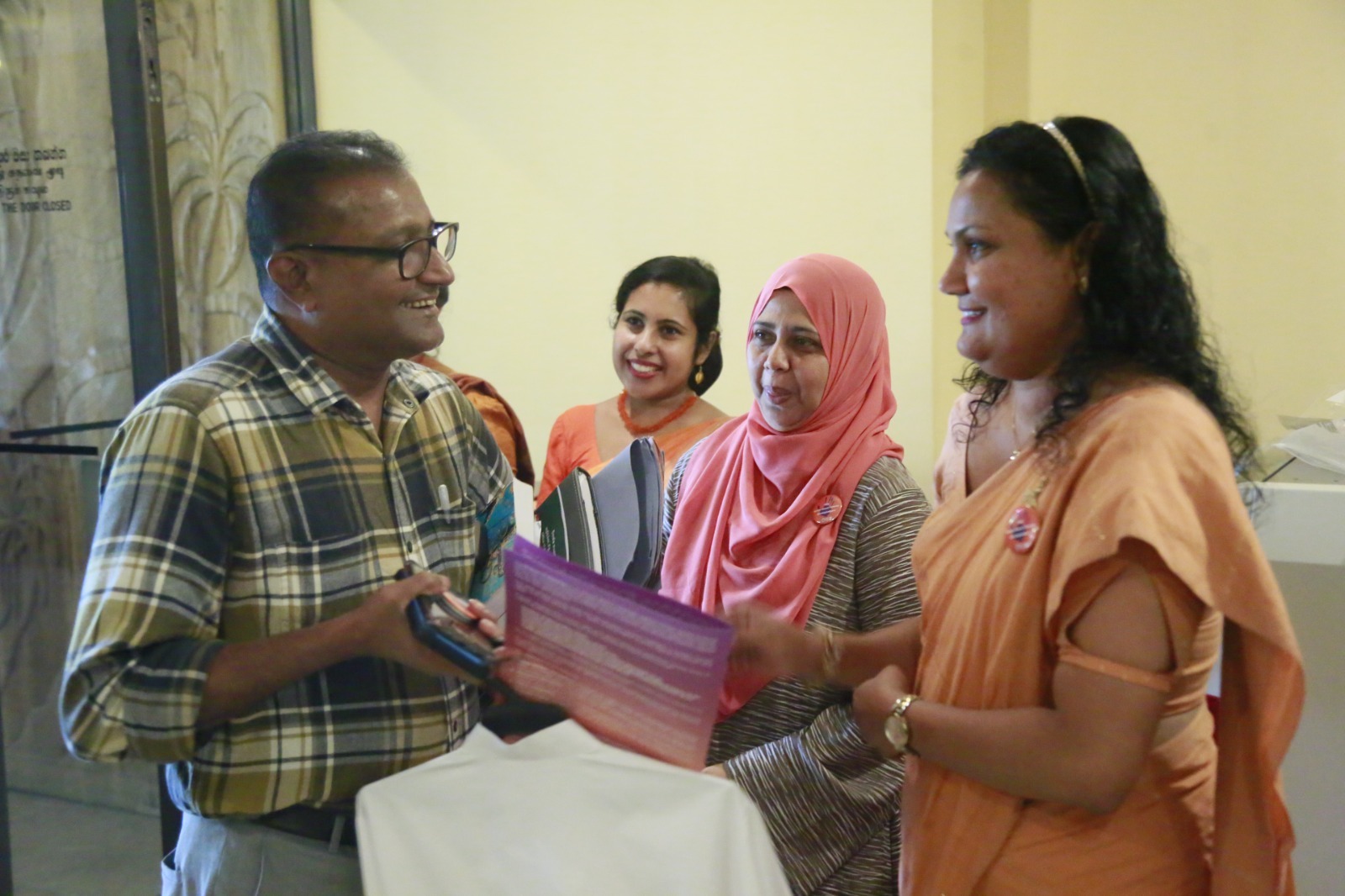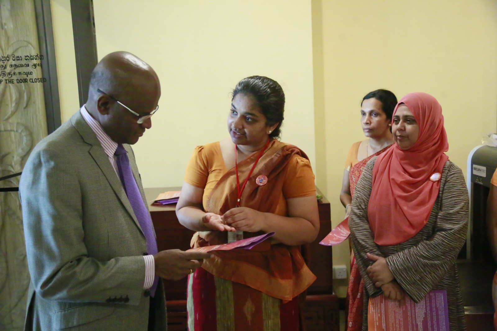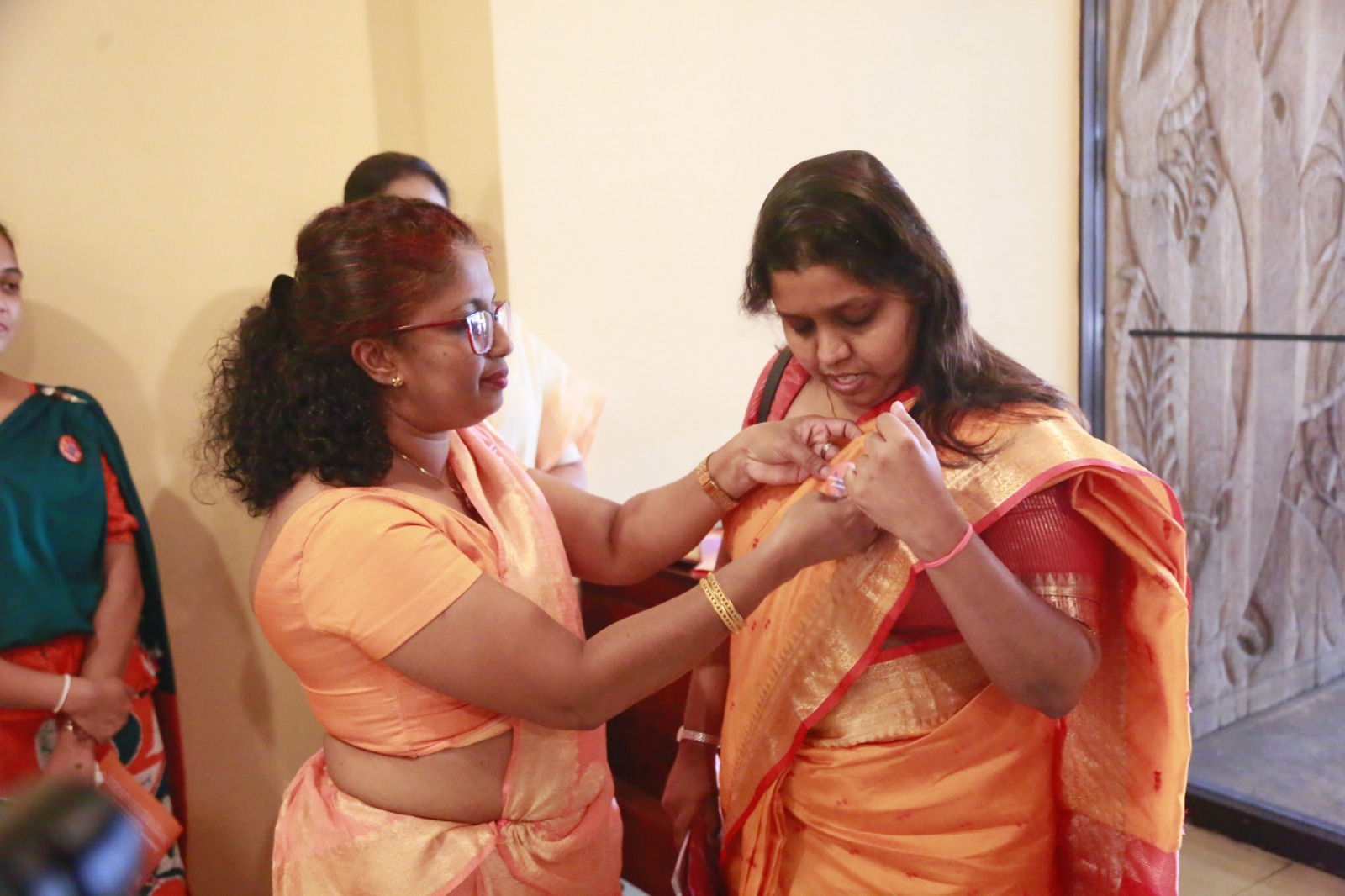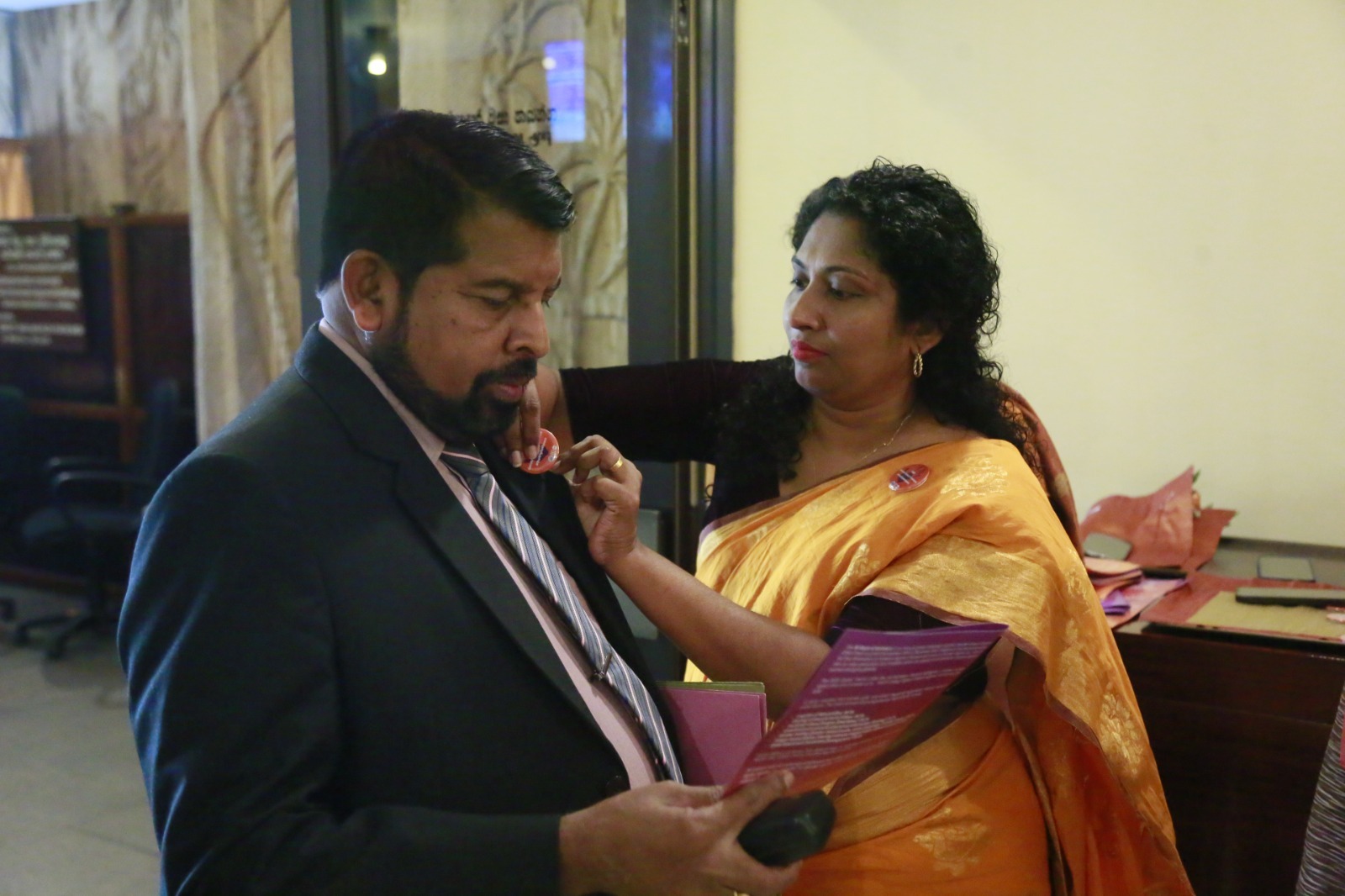 Expressing their support for today’s programme, women parliamentarians as well as male parliamentarians, and members of the Parliamentary staff, arrived dressed in orange or orange-accented attire.