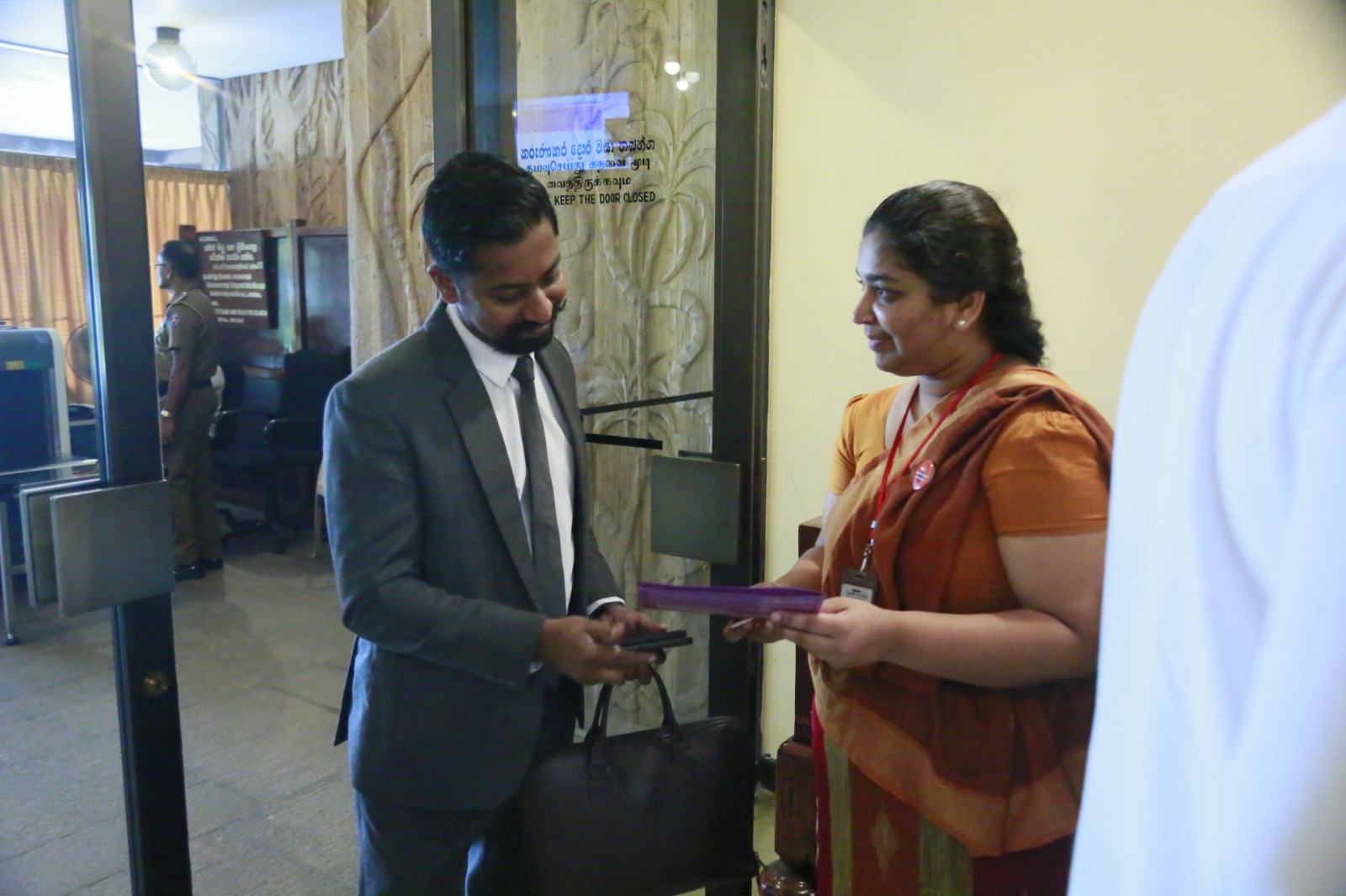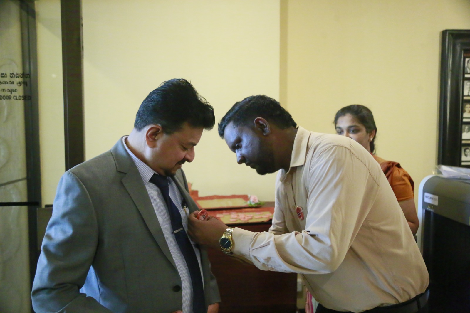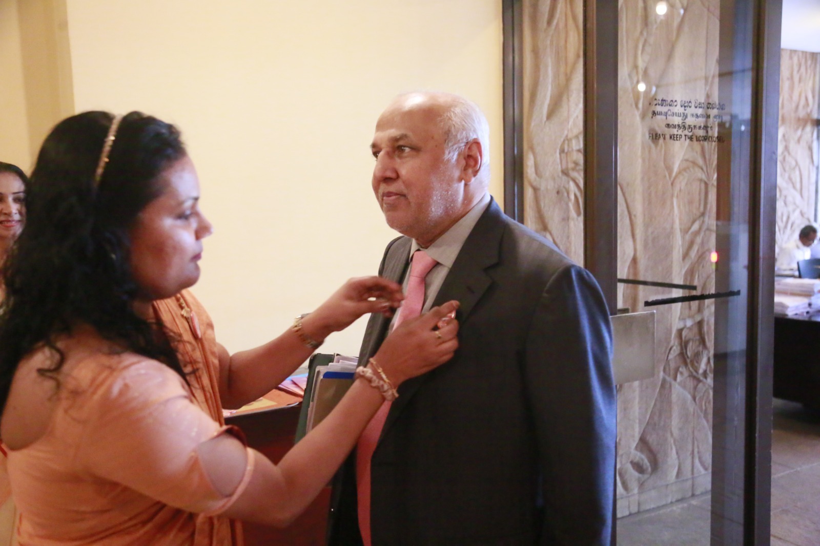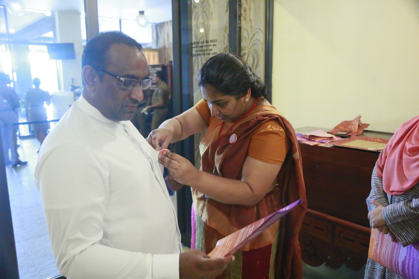 Supporting the “16 Days of Activism” to end gender-based violence, a series of programmes was held today (24) within Parliament. Accordingly, badges symbolizing the commitment to end gender-based violence were pinned onto Hon. Prime Minister Dr. Harini Amarasuriya and Hon. Speaker (Dr.) Jagath Wickramaratne.