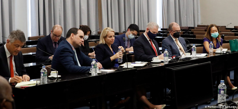 U.S. Ambassador to Sri Lanka H.E. (Ms.) Julie J. Chung, European Union Ambassador H.E. Denis Chaibi, New Zealand High Commissioner to Sri Lanka H.E. Michael Appleton, U.K. High Commissioner to Sri Lanka H.E. (Mrs.) Sarah Hulton, Australian High Commissioner to Sri Lanka H.E. David Holly and Canadian High Commissioner to Sri Lanka H.E. David McKinnon attended the meeting held at the Parliament Complex.