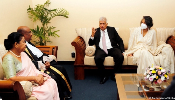 Hon. Mahinda Yapa Abeywardana, the Speaker and Mr. Dhammika Dasanayake, the Secretary General of Parliament received the President Hon. Ranil Wickremesinghe near the main entrance of the Parliament building.