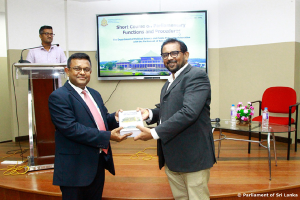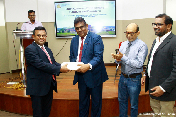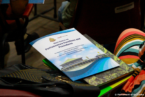 The resources for this course, which was started for the study of the final year students of the Department of Political Science and Public Policy of the University of Colombo, are provided by the Secretary General of the Parliament and the senior officials of the General Secretariat of the Parliament.
