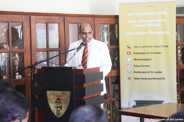 Assistant General Secretary of the Parliament, Mr. Tikiri K. Jayathilake addressed the gathering under the topic of “Parliamentary committees and the contribution of the future citizen”, and Mr. H.E. Janakantha Silva Director (Legislative Services) and Acting Director (Communications) addressed the audience on the topic “introduction to the Legislative Process”.