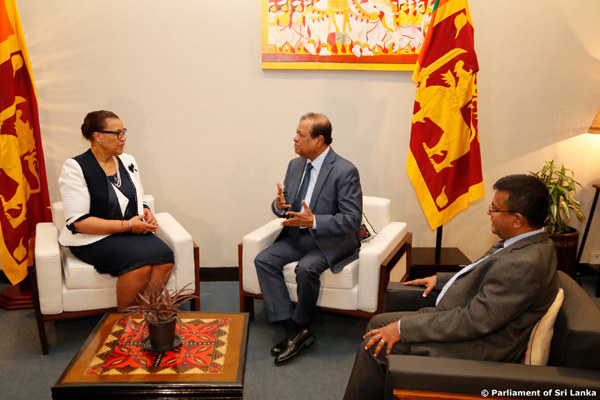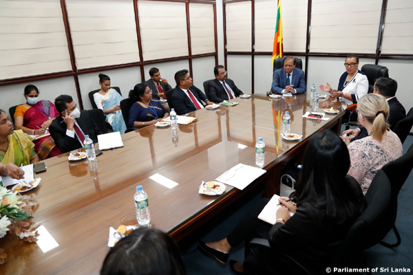 Prof. Luis Franceschi - Assistant Secretary General of Commonwealth, Ms. Deborah Jamieson, Chief of Staff and Senior Director office of the Secretary-General, Ms. Dinisha Panditharatne, Adviser and Head (Asia Region), Governance and Peace Directorate, Ms. Amy Coles, Communications Officer, Media and Public affairs were also present at the meeting held between the Leader of the House of Parliament and the Commonwealth Secretary-General.