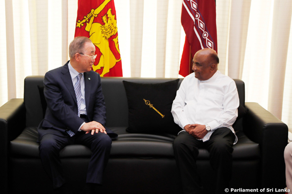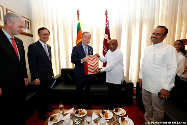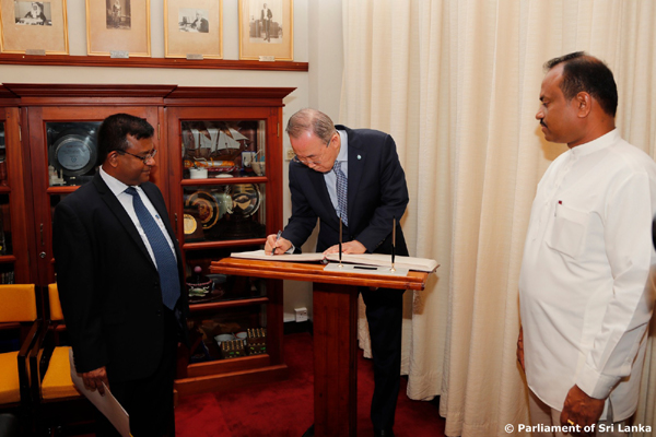 Hon. Ajith Rajapakse, Deputy Speaker of Parliament, Hon. Naseer Ahamed, Minister of Environment, Mr. Dinesh Weerakkody, Chief Advisor to the President and the Secretary General of Parliament Mr. Dhammika Dasanayake were present at the meeting held with H.E Ban Ki-moon, in Parliament.