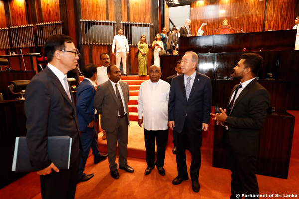 Following the cordial discussion held, the delegation led by H.E Ban Ki-moon including H.E. Woonjin Jeong, Ambassador of the Republic of Korea to Sri Lanka, Dr. Frank Rijsberman, GGGI Director General toured the chamber of Parliament.