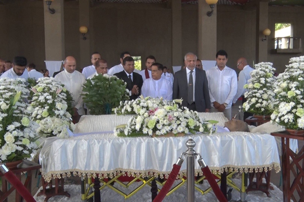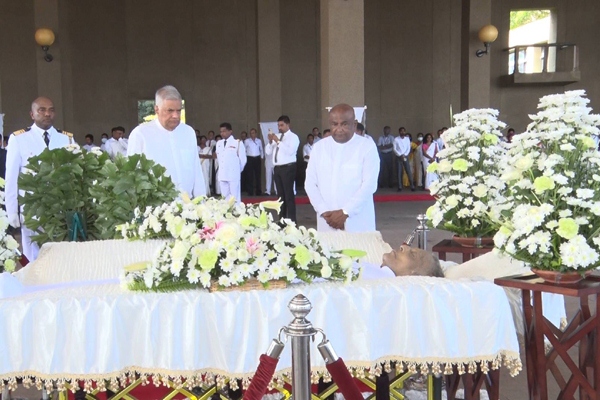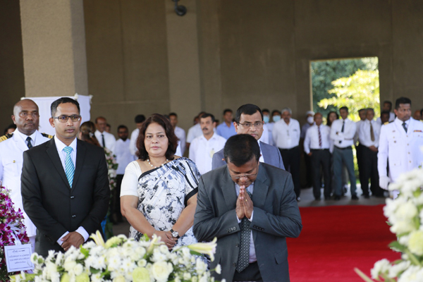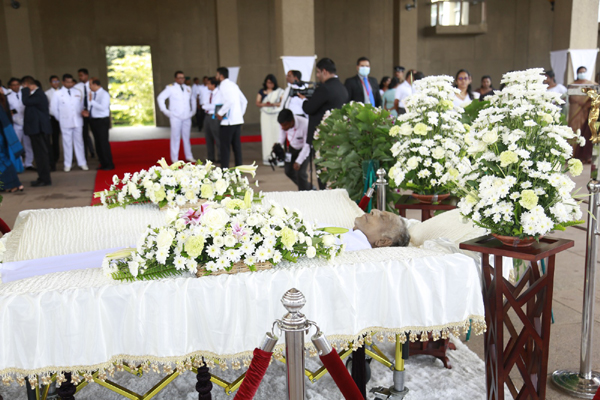 Furthermore, former Presidents and Members of Parliament Hon. Mahinda Rajapaksa and Hon. Maithreepala Sirisena and former Speaker Hon. Karu Jayasuriya were also present to pay final respects.