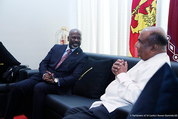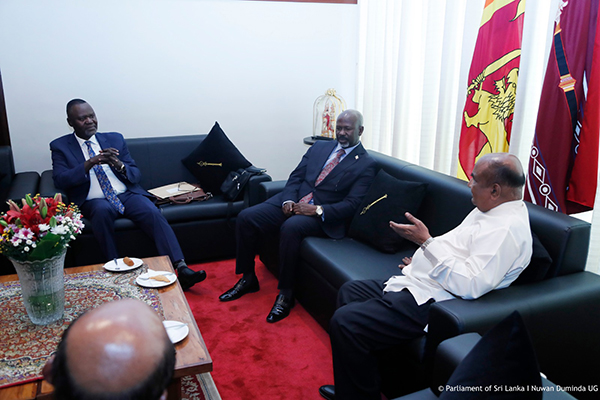 உகண்டா பாராளுமன்ற உறுப்பினர்களான கௌரவ எலெய்ஜா ஒகுபு மற்றும் கௌரவ அப்து கடுன்டு ஆகியோர் மரியாதையின் நிமித்த சபாநாயகர் கௌரவ மஹிந்த யாப்பா அபேவர்தனவை நேற்று (ஆக. 24) பாராளுமன்றத்தில் சந்தித்தனர்.