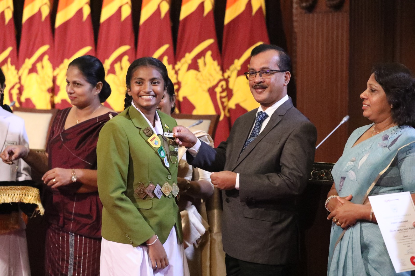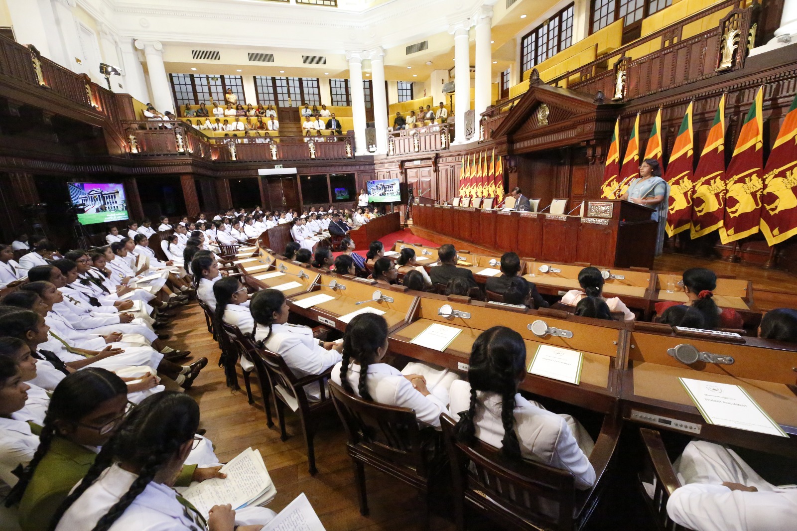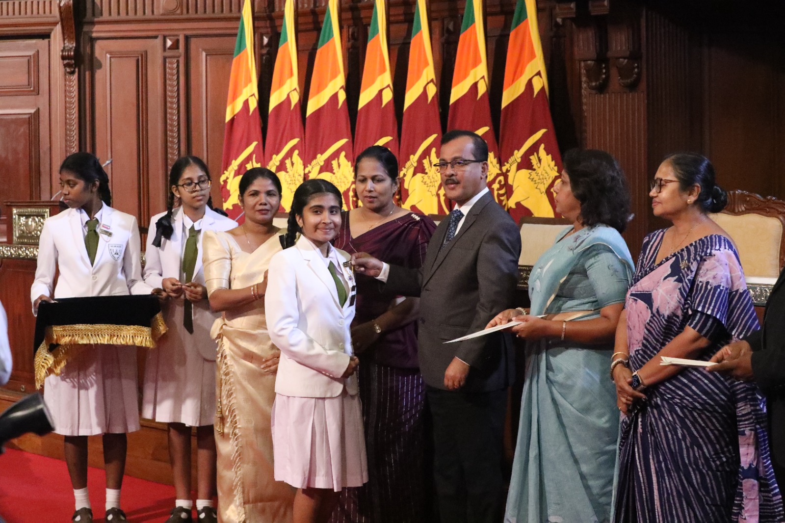 කඩවත මහාමායා බාලිකා විද්යාලයේ ශිෂ්ය පාර්ලිමේන්තුවේ සභිකයින්ට නිල ලාංඡන පැළඳවීම ජනාධිපති ලේකම් කාර්යාලයේදී පසුගියදා (අප්රේල් 27) පැවැත්විණි.