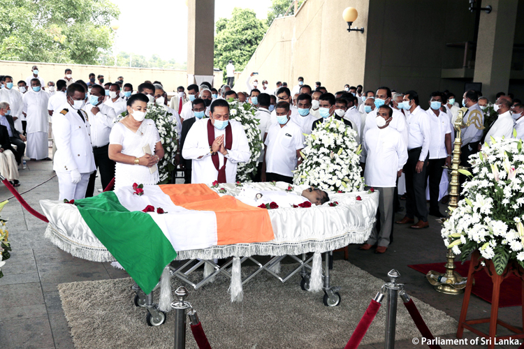 අවමංගල්ය කටයුතු අවසන් වූයේ අග්රාමාත්යතුමන් හා හිටපු කථානායකතුමන් ප්රමුඛවත්වය සහිතව පැමිණ රතු පලස මතින් දේහය අවමංගල්ය රථයෙහි යළිත් තැන්පත් කිරීමෙනි.