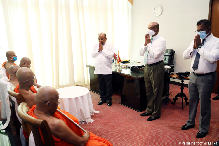 නාරාහේන්පිට අභයරාමාධිපති මුරුත්තෙට්ටුවේ ආනන්ද හිමියන් ඇතුළු වැඩම කළ මහා සංඝරත්නය විසින් කථානායකවරයාට ආශිර්වාද සෙත් පිරිත් සජ්ඣායනය කොට ආශිවාර්ද කළ අතර, නව ධුරයේ වැඩකටයුතු සිදු කිරීමට වැදගත්වන පරිදි අනුශාසනාවක්ද සිදු කරන ලදි.