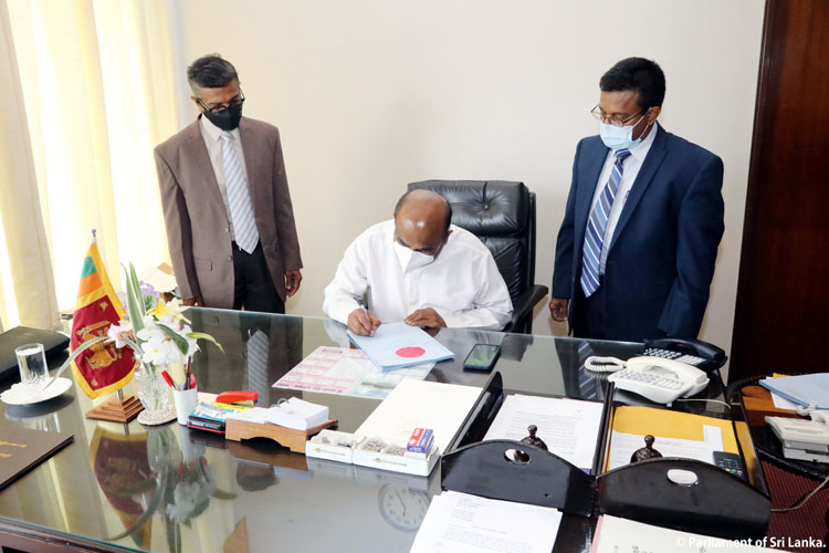 20 වැනි ආණ්ඩුක්රම ව්යවස්ථා සංශෝධන පනත් කෙටුම්පතට කථානායක මහින්ද යාපා අබේවර්ධන මහතා අද පෙරවරුවේ අත්සන් තැබීය.