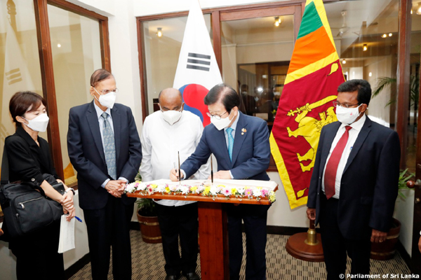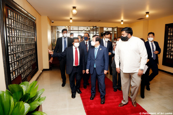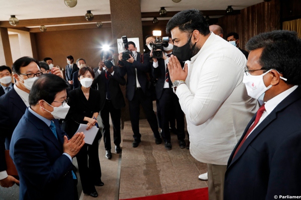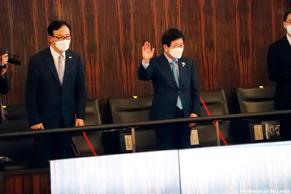 ගරු කථානායක මහින්ද යාපා අබේවර්ධන මහතාගේ ආරාධනයකට අනුව මෙරටට පැමිණි දකුණු කොරියානු කථානායකවරයා ඇතුළු නියෝජිත පිරිස පිළිගනු ලැබුවේ නියෝජ්ය කාරක සභා සභාපති අංගජන් රාමනාදන්, පාර්ලිමේන්තුවේ මහලේකම් ධම්මික දසනායක සහ වේත්රධාරි නරේන්ද්ර ප්රනාන්දු යන මහත්වරුන් විසිනි.