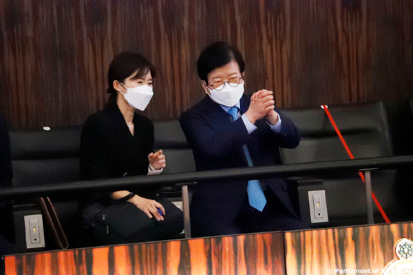 දකුණු කොරියානු කථානායකවරයා පාර්ලිමේන්තුවට පැමිණෙයි |
