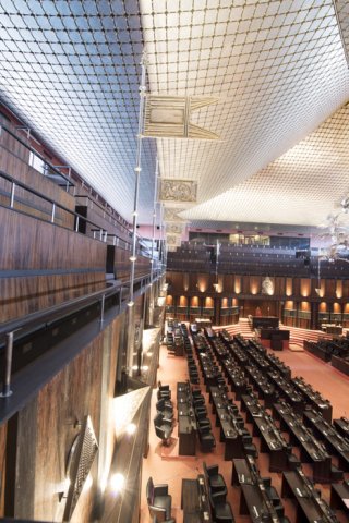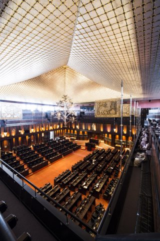 සභා ගර්භය තුළ මන්ත්රීවරුන්ට ආසන පහසුකම් සලසා ඇත්තේ මේස සහිතව තට්ටුවෙන් තට්ටුව උස් වන පරිදි සවි කළ ආසන මගිනි. සභා ගර්භය තුළ වායු සමීකරණ පහසුකම් ද සහිතව මන්ත්රීවරුන් 232 ක් සඳහා ආසන පනවා ඇත. ඔවුනොවුන්ට හිමි ආසන ප්රමාණය පදනම්කර ගනිමින් ඒ ඒ පක්ෂ සහ කණ්ඩායම් සඳහා සභාව තුළ ආසන පනවා ඇත. ආණ්ඩු පක්ෂය මූලාසනයේ දකුණු පසින් ද, විපක්ෂ දේශපාලන පක්ෂ සහ කණ්ඩායම් වම් පසින් ද, සිටින සේ සභා ගර්භය තුළ අසුන් පනවා තිබේ.