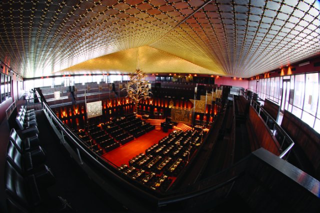 සභා ගර්භයේ ඉහළ කොටසේ මහජන ගැලරි සහ පුවත්පත් වාර්තාකරුවන්ගේ ගැලරිය පිහිටා තිබේ. කථානායකවරයාගේ ආසනයට කෙළින් ම ඉදිරියෙන් ආසන 96 කින් සමන්විත කථානායකවරයාගේ ගැලරිය පිහිටා ඇති අතර, එය සම්භාවනීය අමුත්තන්ට වෙන් කර ඇත. කථානායකවරයාගේ අසුනට උඩින් පිහිටා ඇති ගැලරියේ පුවත්පත් වාර්තාකරුවන් 64 දෙනෙකු සඳහා ඉඩකඩ සලසා ඇත. මීට අමතරව 600 දෙනෙකුට පමණ ආසන පහසුකම් සලසා ඇති මහජනතාව වෙනුවෙන් වෙන් කරන ලද තවත් ගැලරි 3ක් තිබේ.