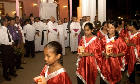 பிரதம அதிதியான கொழும்பு பேராயர் அதி வணக்கத்துக்குரிய கலாநிதி மல்கொம் ரஞ்ஜித் ஆண்டகை கெளரவ சபாநாயகரின் வாசஸ்தலத்தில் ஆசி நீரைத் தெளித்து ஆசீர்வதித்ததைத் தொடர்ந்து ஆராதனைகள் ஆரம்பமாயின. அடுத்து ஆரம்ப பவனி இடம்பெற்றது. பீட பரிசாரகர்கள், அருட்தந்தையர்கள், கெளரவ சபாநாயகர் மற்றும் பேராயர் ஆகியோர் பவனிவந்தனர். அதிவணக்கத்துக்குரிய அருட்தந்தை பெனடிக்ற் ஜோசப் அவர்களின் நேர்முக வர்ணனையுடன் வழிபாடுகள் ஆரம்பிக்கப்பட்டன. அருட்தந்தை ஜகோமே கொன்சல்வஸ் எழுதிய 'ஆரம்பயென் பெர' என்னும் அருமையான பாடலை திரு. லோரன்ஸ் மாட்டின், திரு. சுனில் சாந்த வர்ணகுலசூரிய மற்றும் குழுவினர் இசைக்க சம்பந்தப்பட்ட பைபிள் வாசகங்கள் வாசிக்கப்பட்டன.