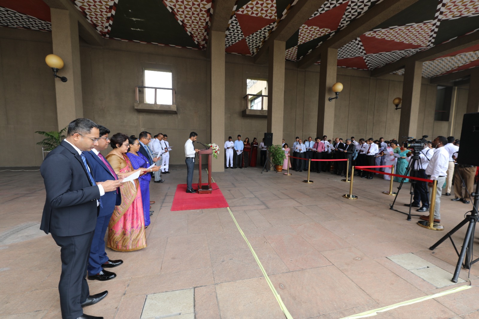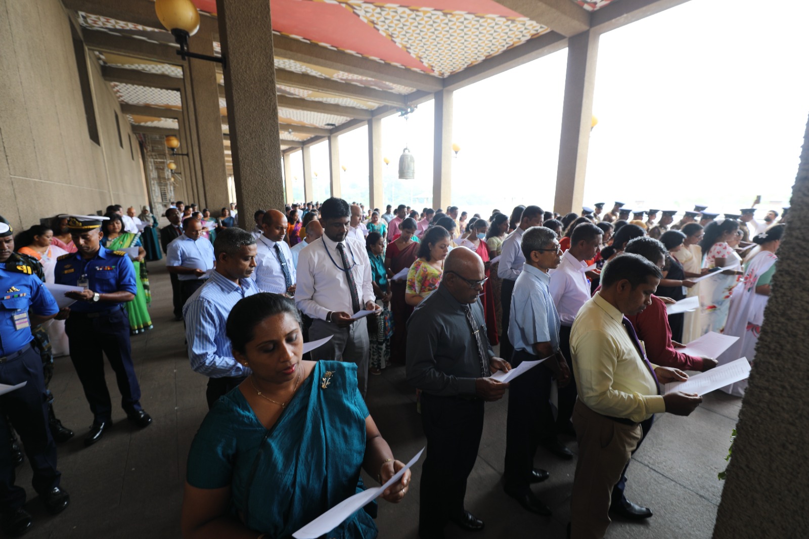 இந்த நிகழ்வில் பாராளுமன்ற பணியாட்தொகுதியினர் உள்ளிட்ட அனைவரும் அரசாங்க ஊழியர்களுக்கான உறுதியுரையை எடுத்துக்கொண்டனர்.