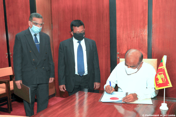 கடந்த வாரம் பாராளுமன்றத்தில் நிறைவேற்றப்பட்ட இரு சட்டமூலங்களை கௌரவ சபாநாயகர் சான்றுரைப் படுத்தினார் |