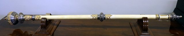 52 அங்குல நீளமும் 7 ½ இறாத்தல் நிறையும் கொண்ட இச் செங்கோல் 355 பகுதிகளைக் கொண்டுள்ளதோடு, நாற்பது பகுதிகளாகப் பிரிக்கக்கூடியவாறு வடிவமைக்கப்பட்டுள்ளது. இரண்டு யானைத் தந்தங்கள், 45 இருபது கரட் தங்கக் காசுகள், 3 ½ இறாத்தல் கொண்ட 45 வெள்ளித் துண்டுகள் மற்றும் பெறுமதி மிக்க பல இரத்தினக் கற்கள் இதன் உருவாக்கத்திற்காகப் பயன்படுத்தப்பட்டுள்ளன.